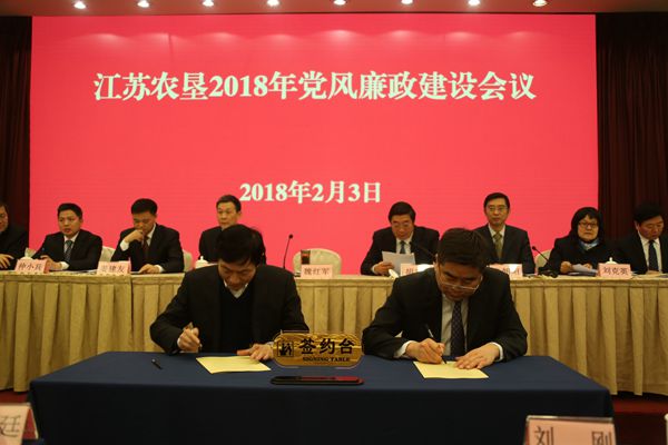 2月3日下午,集團公司在南京召開2018年黨風廉政建設會議,分析墾區(qū)黨風廉政建設形勢,部署2018年黨風廉政建設任務。集團公司黨委書記、董事長魏紅軍作了講話,并與直屬企業(yè)黨委負責人逐一簽訂黨風廉政建設責任狀,黨委副書記、總經理胡兆輝主持會議,黨委委員、紀委書記章朝陽傳達中紀委二次全會和省紀委三次全會精神。集團公司黨委班子成員姚準明、姜建友、劉克英、仲小兵、蘇志富、楊義林,以及周作義、陳建軍,工會主席佟曉廷、總經濟師劉剛,總經理助理孫鍵、季友兵出席會議。