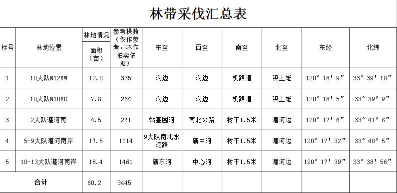所有經林管中心和競買方現場確認的屬于拍賣范圍內的林帶(詳見附表)。要求在簽訂采伐協議后30個日歷日內將中標林帶采伐結束,以買受人通知林管中心驗收日為基準,逾期按照200元/天計算罰款。