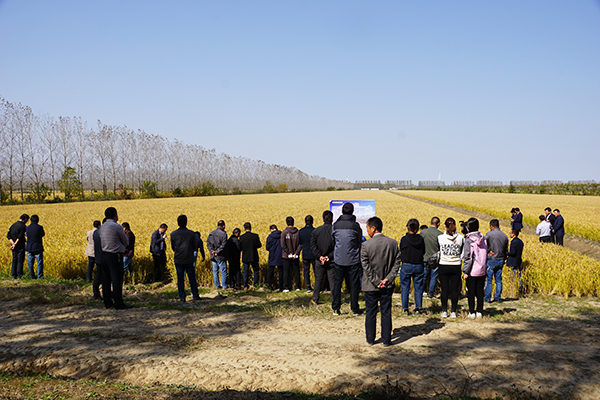 期間,與會人員實地參觀了墾荒耙耙地、常規正反旋播種、南粳505水稻觀摩點等,現場對肥料運籌、目標產量、管理措施等進行溝通交流,各單位還對水稻收割、播種、銷售等作探討。徐啟來進行現場點評。