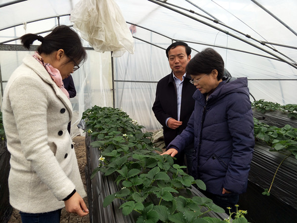 12月4日,江蘇省草莓協會會長、省農科院園藝所研究員趙密珍老師,在盱眙縣副縣長王西成的陪同下,一行五人來三河科技園區調研指導工作,三河分公司總經理趙廣福、副總農藝師賈后如陪同接待。