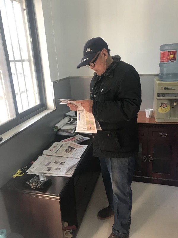 城東居委會(huì)主任邱金龍告訴筆者,起初是他偶爾將報(bào)紙上看到的社會(huì)新聞及農(nóng)場(chǎng)趣事分享給老人們,發(fā)現(xiàn)他們都饒有興致,于是就將報(bào)紙都整理出來放在矮柜上讓老人們自己翻閱,久而久之,就形成了這個(gè)“報(bào)紙角”。邱主任說,這些報(bào)紙放著也是放著,與其堆在角落里落灰,不如拿來給老人們讀一讀,鍛煉他們的理性思維能力,豐富他們的科學(xué)文化知識(shí),充實(shí)他們的精神文化生活,他們看的開心,我們也覺得很有意義。老人們也不挑剔,默不作聲,有什么就看什么,漸漸地,大家都不約而同,隔段時(shí)間就來看看有沒有新報(bào)紙。