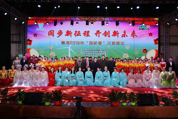 農場公司黨委書記黃禮慶在演出前作新春致辭。他說,在習近平新時代中國特色社會主義思想和黨的十九大精神指引下,在集團公司黨委的領導下,2018年全體職工共同努力、辛勤工作,臨海取得了豐碩的成果。農場公司化改革、企業辦社會職能及“三供一業”分離移交等工作全面推進;林業轉型升級初見成效,與射陽縣旅游局、旅投公司進行了廣泛合作;信用管理貫標獲得省級示范單位。分公司農業生產成效顯著,生產管理水平保持農發公司第一方陣,連續第三年獲得“先進企業”稱號。