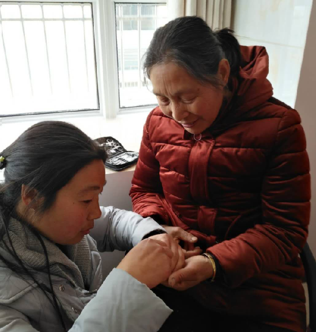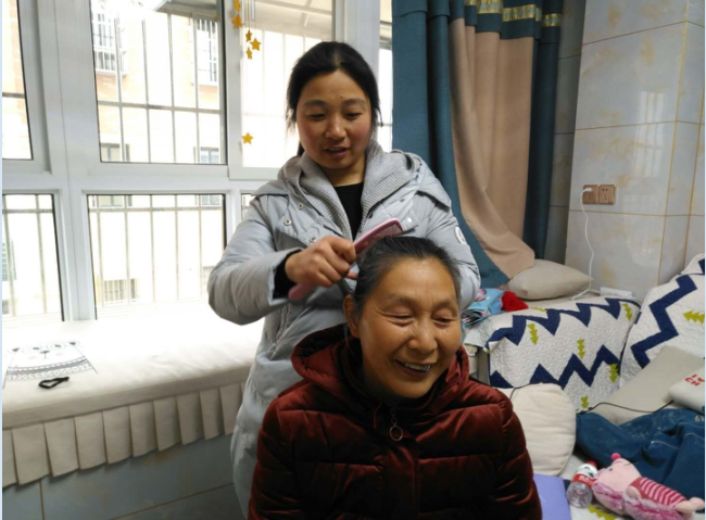 現(xiàn)在,只要街坊鄰居說起葉芹時,兩位婆婆總是搶著說:“能有這么個好兒媳,真是我們前世修來的福。”圖為葉芹在給婆婆梳頭剪指甲。