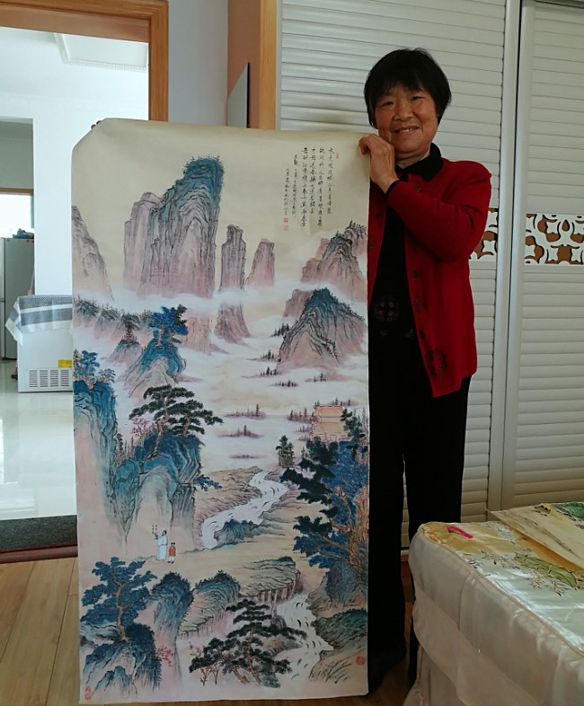 功夫不負(fù)有心人,她的國畫和書法作品多次入選《晚霞余輝》書畫集中。由于她表現(xiàn)出色,后經(jīng)朋友引薦,她參加市老年大學(xué)3年書畫班學(xué)習(xí),在校期間,參加了書法、國畫、篆刻等課程。每天早晨和幾個朋友一起坐車去上課,然后再趕回家中做午飯。雙休日就自帶中飯,學(xué)習(xí)一天。“我一個人帶小孩時上半天課,老公退休后又多報了幾個班。”交談中趙梅生開心地說著。