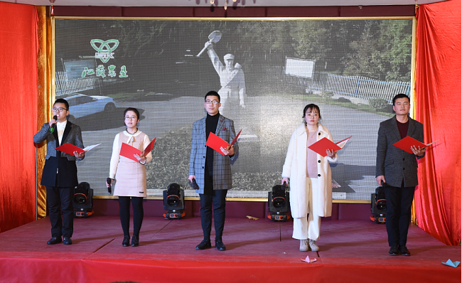 把理想誓言背在肩上,拼搏奮進充滿力量;把汗水艱辛裝進行囊,豪情萬丈奔向前方。一曲催人奮進的華美樂章已奏響,一輪噴薄的太陽,又冉冉升起在東方。長風(fēng)鼓起遠航的航船,決策者已吹響出征的號角,讓我們精心耕耘在這片土壤,淮海人氣宇軒昂。我們奉獻,無怨無悔;我們自豪,歌聲嘹亮;我們驕傲,我們是淮海人,讓我們共同努力,共筑淮海明天的輝煌。圖為詩朗誦現(xiàn)場。
