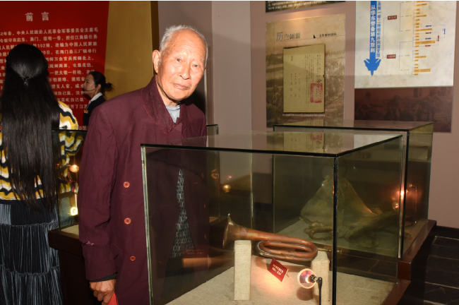 “放在家里保存難過三代,而放在陳列館里收藏卻是千秋萬代!”在老人捐獻(xiàn)軍號糾結(jié)之時,農(nóng)場黨委書記束向紅特地登門開道。束書記一番話終于打動了老人,于是老人把珍藏幾十年的“老伙伴”捐贈了出來。