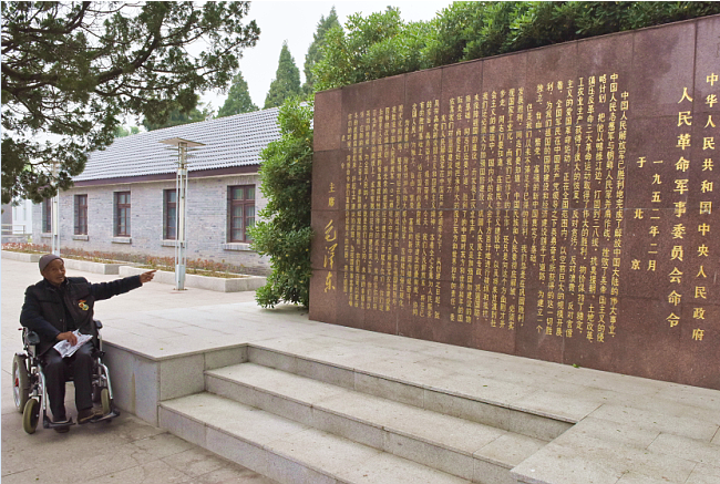 自農(nóng)建四師暨淮海農(nóng)場歷史陳列館和華中工委紀念館、射陽縣黨性教育基地、射陽縣廉政教育館在內(nèi)的射陽廉政文化教育專線被列入鹽城市推薦的東臺、大豐、射陽三條廉政專線以來。農(nóng)建四師暨淮海農(nóng)場歷史陳列館迅速成為鹽城市內(nèi)廣大黨員干部競相參觀的熱點景區(qū)。而在農(nóng)建四師紀念碑、毛澤東主席簽署的生產(chǎn)待命 建設(shè)農(nóng)場命令碑文前,我們常可以看到一位身佩3枚金質(zhì)像章的老人坐在輪椅上,觀看毛主席命令、瞻仰著農(nóng)建四師紀念碑的鏡頭,他就是城西居委會振興小區(qū)92歲高齡的退休老干部胡鐵成。