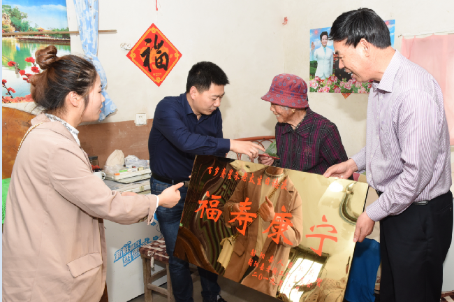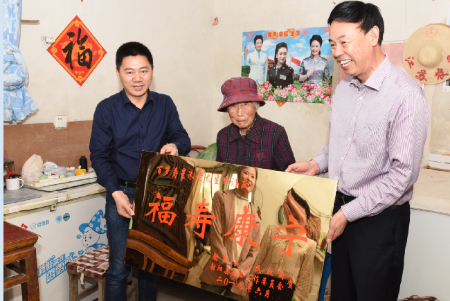 看到老人有如此強(qiáng)健的體魄和對(duì)答如流的話語后,宋艮高感慨地說,老人的健康長(zhǎng)壽離不開社會(huì)的環(huán)境,更離不開家人的悉心照顧,他在向百歲老人獻(xiàn)上2000元的慰問紅包同時(shí),還代表射陽縣人民政府和射陽縣老齡委把寫有百歲壽星朱老太生日?慶的福壽康寧字樣的福壽牌匾遞給了老人,并與老人一起合影留念。同時(shí)還希望朱榮美繼續(xù)照顧好老人的生活起居,真正使老人老有所養(yǎng)、老有所樂。