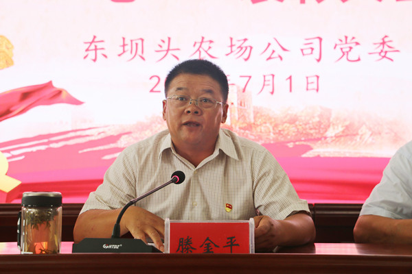 黨委書記滕金平在慶祝建黨98周年暨“七一”表彰大會(huì)上作講話。他指出,一要不忘歷史、牢記初心。開展主題教育,學(xué)習(xí)總書記講話,回顧革命歷程,領(lǐng)悟初心,對(duì)照為群眾謀幸福的標(biāo)兵,去驗(yàn)證自己的初心,把自己的初心融入到為東壩頭職工群眾謀幸福的事業(yè)中;二要立足時(shí)代、擔(dān)當(dāng)使命。要以實(shí)現(xiàn)東壩頭“精強(qiáng)黨建、精致農(nóng)業(yè)、精品種業(yè)、精美城鎮(zhèn)”的“鄉(xiāng)村振興戰(zhàn)略-農(nóng)墾在行動(dòng)”為目標(biāo),培育能打會(huì)戰(zhàn)、一心為職工群眾著想的高質(zhì)量團(tuán)隊(duì),培育甘為奉獻(xiàn)、沖鋒在前、勇于擔(dān)當(dāng)?shù)膬?yōu)秀共產(chǎn)黨員隊(duì)伍,將企業(yè)發(fā)展融入到實(shí)現(xiàn)老百姓對(duì)美好生活的向往之中,立足新時(shí)代、勇于擔(dān)當(dāng),為職工群眾謀幸福、為民族謀復(fù)興的使命;三要打造過硬支部、構(gòu)筑戰(zhàn)斗堡壘。著力打造能力過硬、發(fā)展過硬、服務(wù)過硬、作風(fēng)過硬的黨支部。他強(qiáng)調(diào),全員必須自覺把思想和行動(dòng)統(tǒng)一到習(xí)近平總書記的重要講話精神上來,牢牢把握“守初心、擔(dān)使命、找差距、抓落實(shí)”的總要求,認(rèn)真學(xué)習(xí)貫徹會(huì)議精神,確保主題教育取得扎扎實(shí)實(shí)的成效,向黨的98周歲生日和祖國(guó)的70周歲生日獻(xiàn)禮!