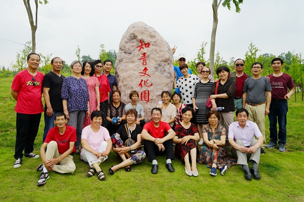 老知青們以知青文化園的石碑為背景集體留影后分別還單獨留影。