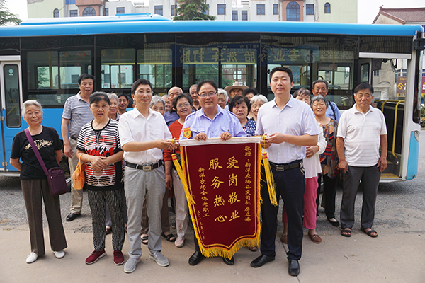 “我們今天是來向房師傅表示感謝的,謝謝他一直以來對我們的熱情服務和照顧。”7月5日上午7時30分,江蘇農墾新洋農場部分老年乘客代表們將一面寫有“愛崗敬業 服務熱心”的紅色錦旗送到射陽公交駕駛員房立海身邊表示感謝。
