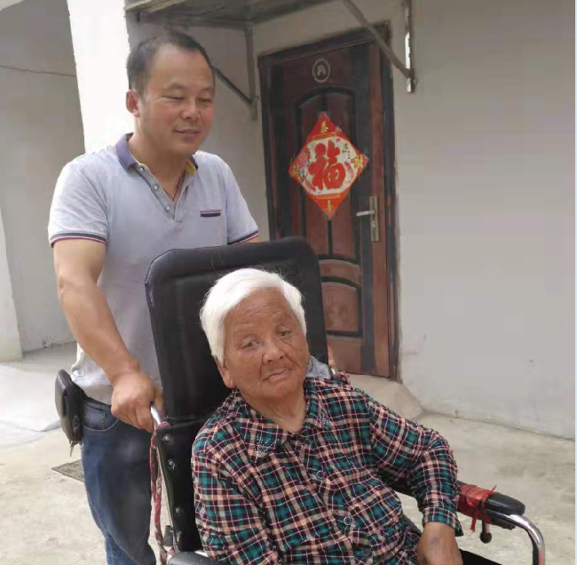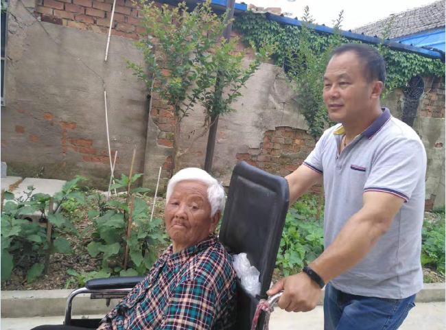 那時吉長清陳翠紅夫妻住在38大隊,為了能夠照顧好岳父,十幾年時間里,他每天將岳父母的房間整理得干凈、整潔、寬敞、給岳父擦洗、更換、按摩及皮膚護理。寒來暑往,刮風(fēng)下雨,老人每次上廁所,都是女婿吉長清或背或扶。