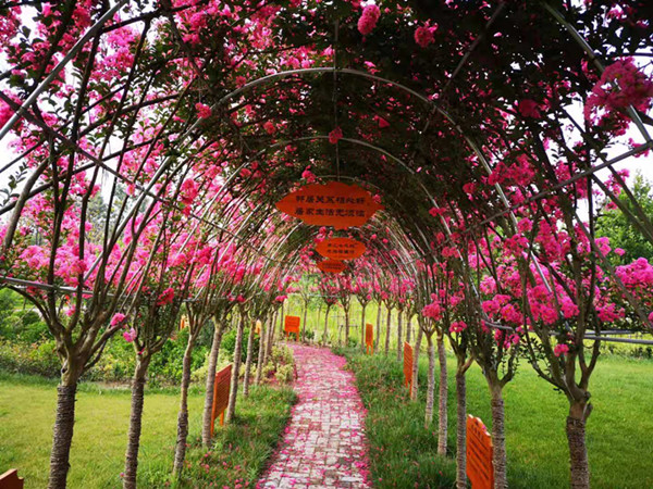 7月26日,新洋農(nóng)場各個微信群里,人們被一組紫薇長廊花開的美景所震撼,紛紛問這是哪里,知道是新洋金龍灣生態(tài)文化園內(nèi)今年新造的百米紫薇長廊后,還有人說要去打卡,讓這成為網(wǎng)紅地。