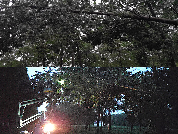 入伏以來,鹽城地區多暴雨天氣。7月28日下午5點,新洋農場境內遭受雷雨大風和短時強降雨,部分大樹刮倒在高壓線上,致使農場境內部分地區停電。