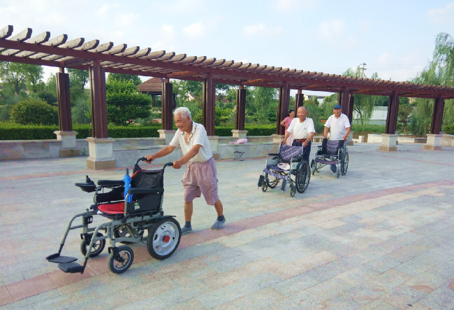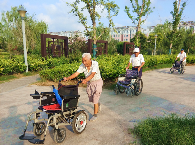 “我們每天坐在輪椅上來公園看看風(fēng)景、聊聊天,生活也是很充實(shí)。當(dāng)然了,推著輪椅車在公園里轉(zhuǎn)圈賽跑,也是我們自我加強(qiáng)體能鍛煉的一種活法,這樣的生活我們這些老頭都是感到很愜意。”三位老人一致地表述著。