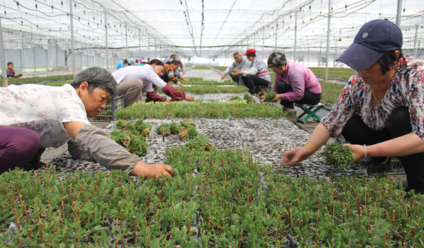 中山杉綠葉期長、耐鹽堿、耐水漬、病蟲害少、生長速度快,被選為江蘇省沿海綠化造林首選樹種,重慶三峽庫區(qū)水消落帶治理樹種。2017年,農(nóng)場利用鋼架玻璃溫室培育扦插36萬株中山杉容器苗,成活率達(dá)70%,在同行中處于領(lǐng)先水平,8月份扦插,12月份即可銷售。2018年繼續(xù)擴(kuò)大規(guī)模,扦插160萬株中山杉容器苗,產(chǎn)品銷往重慶、四川、安徽等地。近年來,?港農(nóng)場林苗產(chǎn)業(yè)堅持“彩色化、珍貴化、效益化”發(fā)展方向 ,全力打造“速生林苗豐產(chǎn)區(qū)、常規(guī)綠化苗木區(qū)、高檔苗木供應(yīng)區(qū)、苗木休閑觀光區(qū)、苗木市場交易區(qū)”等“五大功能區(qū)”和“嫁接苗木基地”、“容器育苗基地”、“中藥材種苗基地”等“三大基地”,現(xiàn)有精品林苗基地3000畝,嫁接的特色產(chǎn)品黃金槐、金森女貞、丁香、紅櫸等暢銷市場,經(jīng)濟(jì)效益凸顯。