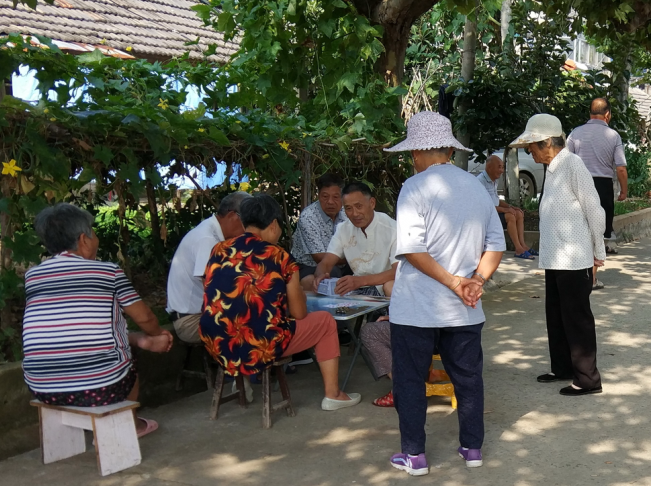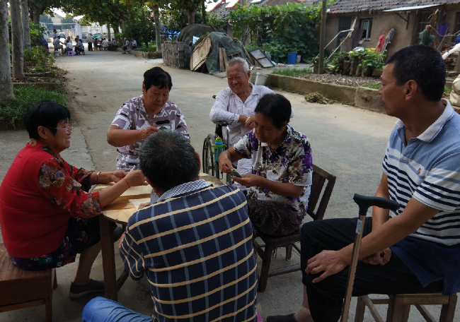 入秋之后,天氣還比較熱,而在淮海,老人們最喜歡玩的地方,就是農場各居委會的活動室里了,這里不僅有大空間的地方打牌聊天,老年人聚在一起,大家相互在照應中度過快樂的一天。當然,在淮海農場社區,我們還發現一些居住在平房中的退休老人都像往常一樣,特別喜歡聚集在比較涼爽的樹蔭下打打牌、聊聊天,過著幸福美滿的生活,在相互談笑和娛樂中度過快樂的一天。
