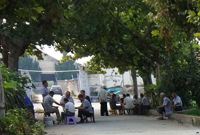 的確,雖然此時的中午太陽還是很“毒”,讓人走在陽光下還感覺到明晃晃的陽光依然是炙熱刺眼,只有在樹的蔭涼下,才感覺到樹蔭的蔭涼和“氧吧”的順暢。我們發現,不僅在振興小區的樹下,在其他小區的樹下或是老年人集中居住的路旁、山肩或是房與房的過道上,這些老年人下午都喜歡聚在一起,在蔭涼下聊天娛樂,當然在蔭涼下打牌,也是他們最好的休息和娛樂方式,既可以鍛煉大腦,防止老年癡呆,還可以打發時間,排解內心的空虛和寂寞。瞧,很多老人聚在樹蔭下打牌,場面是不是非常壯觀。圖為振興小區的老人在梧桐樹下娛樂時的場景。