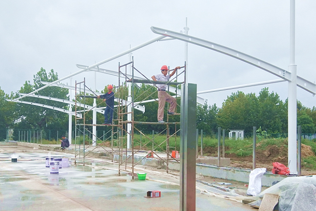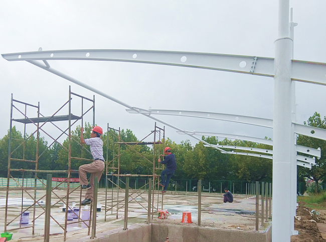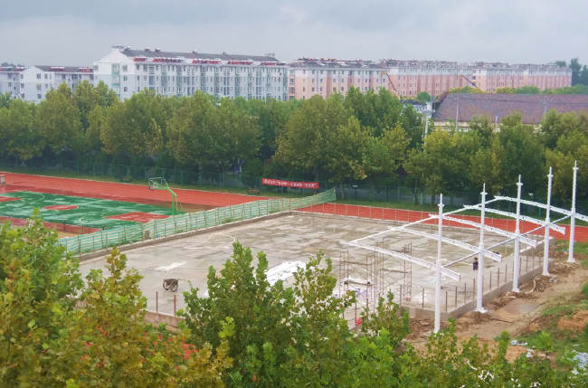 近日,淮海農場職工休閑體育運動廣場在建的門球上,樹起了高大氣派的看臺鋼架,引起了農場社區職工居民的觀看。這項按國家標準而建、總投資約62萬多元的2個標準門球場,設置了看臺、觀賽休息區及相關附屬設施,根據計劃于10月1日前完工并投入使用的門球場,受到了農場社區職工居民尤其是老年朋友的歡迎。