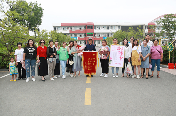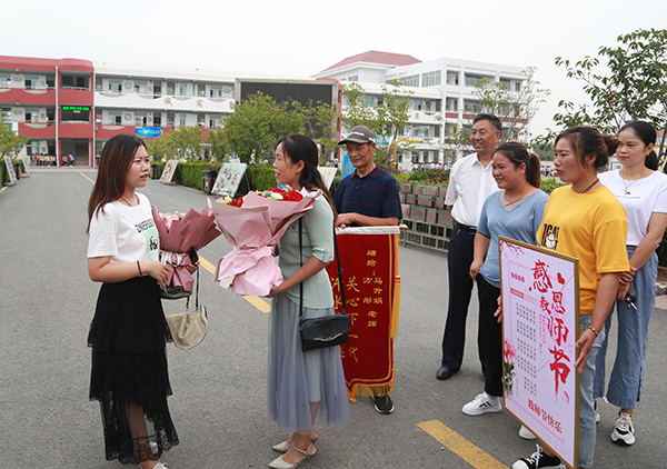 今年9月10日教師節,崗埠中心小學二(6)班家長代表懷揣著萬分感激之情自發來到學校,真誠地把一面印有“關心下一代,汗水澆未來”字樣的錦旗、鮮花送給二位任課教師。