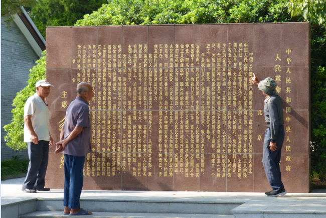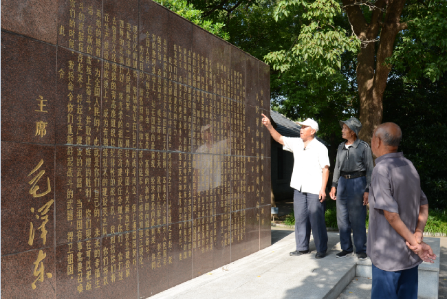 像胡鐵成這3名老兵,在淮海目前只有200多人了,我們從他們的穿著、他們的行為舉止上,依然看到當年農建四師將士們艱苦奮斗的身影,他們就是當年歷史的“活化石”,經常陪伴著這里他們生長和戰斗過的地方。每當有人來這里參觀或受邀為新進大學生、學校學生進行傳統教育時,他們也會走上前或欣然向往,真摯地向后人講述著曾經的軍墾故事、傳統文化和其蘊含著博大精深的軍墾精神。圖為老兵在農建四師紀念碑和毛澤東命令碑文前的鏡頭。