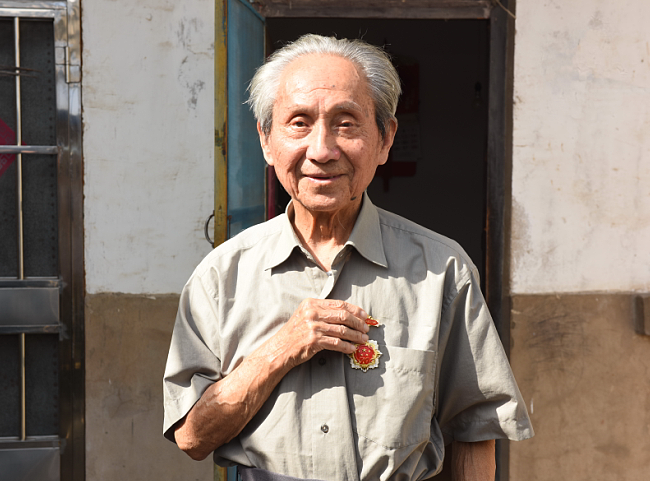 拿到紀(jì)念章后,葉崇山老人不時地?fù)崦鴯湫碌募o(jì)念章,愛不釋手,這一榮譽讓葉老眼中噙滿了淚水。葉崇山離休前是淮海農(nóng)場總農(nóng)藝師,為農(nóng)場的農(nóng)業(yè)發(fā)展和糧棉產(chǎn)量提高傾注了大量的心血。葉老說,他的一生,見證了祖國的發(fā)展壯大,經(jīng)歷了國家的繁榮富強,如今的他,看到我們國家成立70周年所取得的成就很是欣慰。我們也從老人的笑容中可見,這枚紀(jì)念章也是對他為國家農(nóng)業(yè)事業(yè)奉獻大半輩子的最好肯定和獎勵。