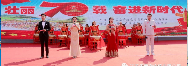 開場前,賀在銳、李衛(wèi)東等領(lǐng)導(dǎo)分別與新中國成立前參加革命工作的老干部代表握手致意,向他們致以節(jié)日的祝福。活動在雄壯的國歌聲中拉開帷幕。賀在銳發(fā)表講話。他代表公司黨委向奮戰(zhàn)在一線的廣大干部職工致以節(jié)日的祝福和親切的慰問。他說,在集團公司黨委的堅強領(lǐng)導(dǎo)下,黃海農(nóng)場公司黨委“不忘初心、牢記使命”的豐碩成果不斷擴大、良好效應(yīng)不斷顯現(xiàn)。未來幾年,將按照集團公司“四個5、五個走在前列”的奮斗目標,以“不忘初心,牢記使命”主題教育取得的成果為基礎(chǔ),以“發(fā)展現(xiàn)代農(nóng)業(yè)、構(gòu)建和諧企業(yè)”為主題主線,致力在改革創(chuàng)新、質(zhì)效提升、民生改善、全面從嚴治黨上持續(xù)發(fā)力、久久為功,繼續(xù)努力走在墾區(qū)前列,為新時代江蘇農(nóng)墾高質(zhì)量發(fā)展作出積極貢獻。
