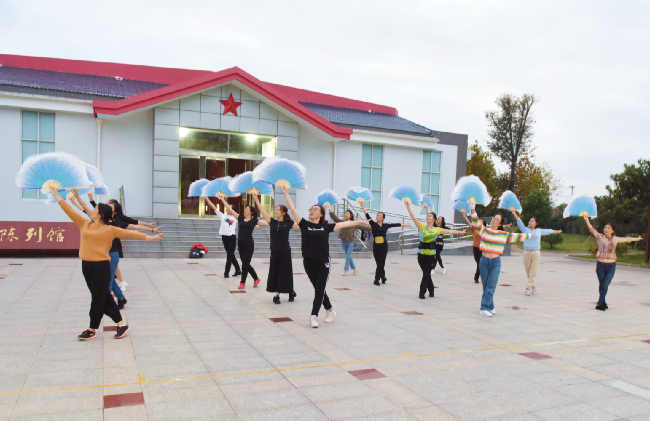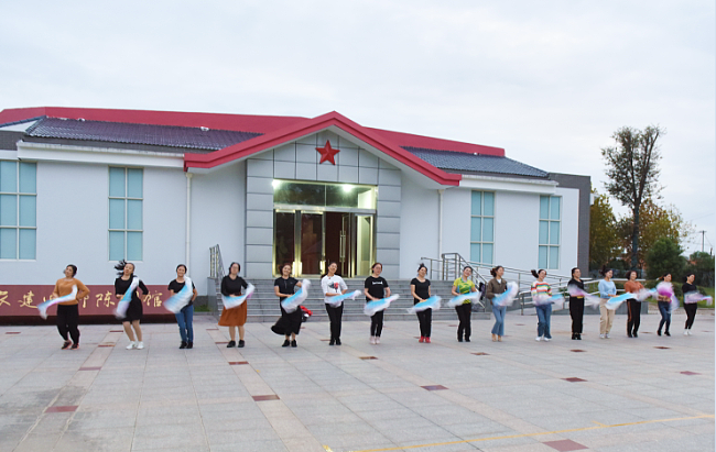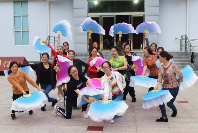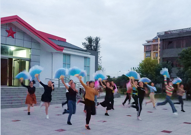 為進一步推進農場公司文藝節目的蓬勃發展,促進美麗淮海家園建設,豐富社區職工居民的文化生活,活躍文藝表演隊伍,進一步營造出和諧的文明創建環境,10月9日傍晚,淮海農場有限公司工會組織的扇子舞蹈隊正在陳列館前進行舞蹈編排排練。