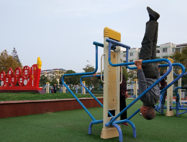 老人雙杠倒立成風景