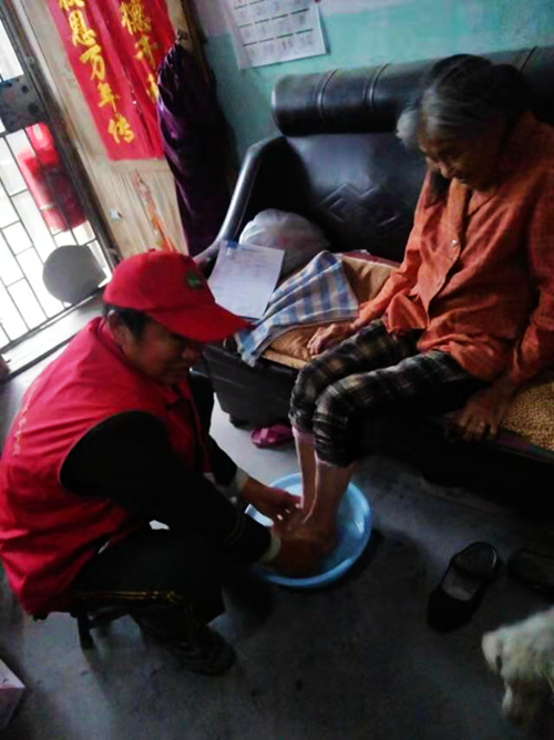 吳蘭英為老人打掃衛生,讓家里變得更干凈。劉湘林為老人家洗腳,自己還買了套理發工具,為老人免費理發,服務實實在在?! £懯讓槔先思曳N地。