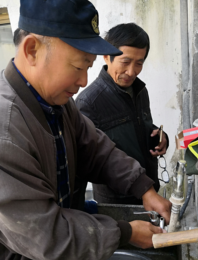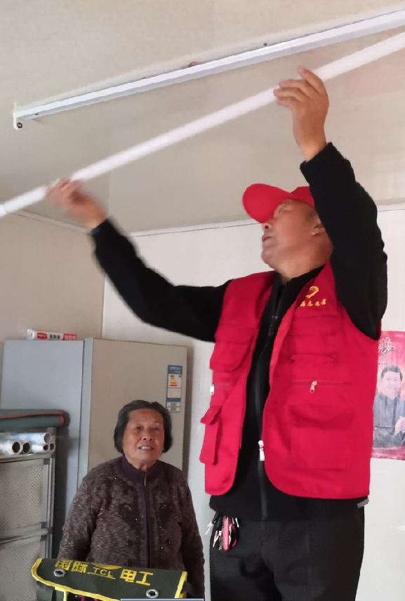 辛濱豐是小區里出了名的大嗓門,他熱心公益事業,除積極參加單位組織的志愿活動的同時,他還踐行“雷鋒”作風,不管是哪家的線路出故障了、水管漏了、下水道堵了,還是哪家夫妻鬧矛盾、鄰里發生糾紛,他總是出現在現場。人們有解決不了的問題,總是請他這個“智多星”前來解決,他所住的轄區,有近百個“三老”人員和相對困難家庭,他總能把他們當作自己的親人一樣,聊家常,問寒暖,盡自身所能給予一定的幫助,成了大家的貼心人!圖為辛濱豐為他人在修理水龍頭、更換電管時的鏡頭。
