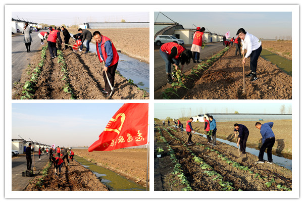 11月12日下午,崗埠農業科技園區突然變得人頭攢動、熱鬧非凡。原來,為了幫助農業科技園栽油菜,來自機關黨群支部、行政支部、投資財務支部及供電中心黨支部的黨員、積極分子共計60人,組成黨員志愿服務隊,義務為農業科技園栽油菜。農場公司黨委書記王信學、紀委書記姜超以普通黨員志愿者身份參加了本次志愿服務活動。