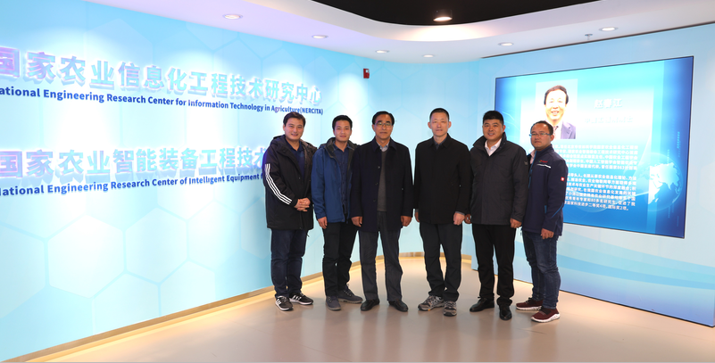 11月21日,黃海農場公司黨委書記、蘇墾農發黃海分公司總經理、中德示范園主任賀在銳帶隊到國家農業信息化工程技術中心和國家農業智能裝備工程技術研究中心考察交流,中德示范園副主任何彥平等參加考察,中心研究員孟志軍陪同座談。