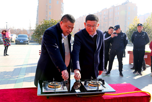 上午十時許,在現場用戶代表、機關代表和新奧燃氣公司工作人員等200余人的見證下,黨委書記王信學和新奧燃氣公司總經理王穎,共同擰下燃氣開關,標志著崗埠正式進入綠色清潔能源的新時代,現場頓時響起熱烈的掌聲。