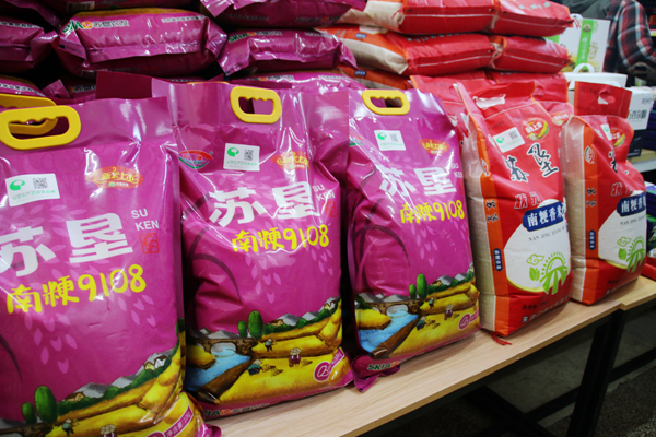 直營店內,人頭攢動、熱鬧非凡。蘇墾米業公司的南粳9108、南粳香米、富硒大米等作為店內主打產品在核心區域進行了展示,金太陽糧油股份有限公司的原香稻米油、葵王濃香花生油,以及江蘇新洋商業物資有限公司的糧博士生態大米、新洋農場五谷雜糧等名牌產品吸引了眾多消費者。