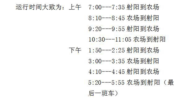 “農場直通射陽的公交車正式開通了!上午7點最早一班從射陽縣出發到農場西大門,下午5點20分最晚一班從農場西大門出發至射陽縣城,上午和下午各有2班次……”近日,該條消息在新洋農場各大微信群轉發后,得到了職工居民的積極回應。