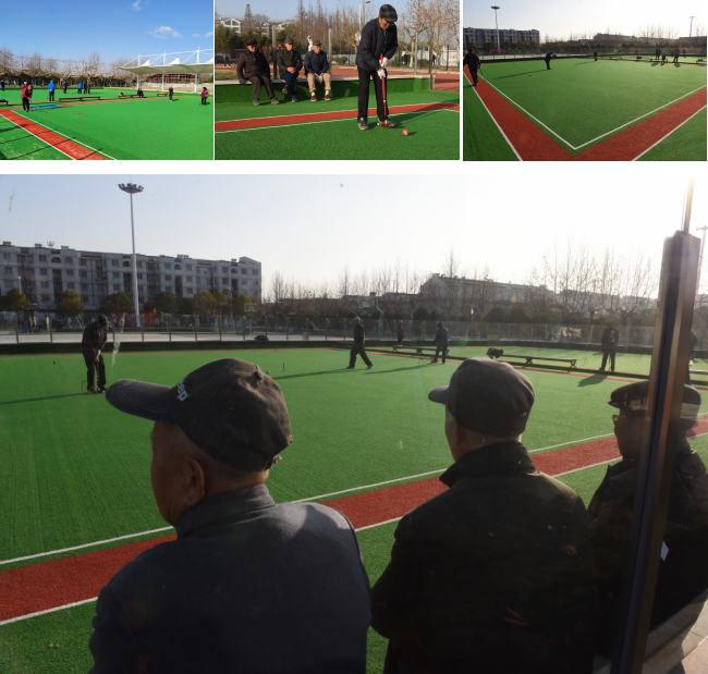 每天上午下午,負責(zé)器械管理的城南社區(qū)退休工人李志蘭就會準(zhǔn)點來到淮海門球場開門。隨即一個個門球愛好者們,就會跟著來到場地內(nèi),進行每天例行的門球運動。雖然門球場在農(nóng)場才建起來,但參加訓(xùn)練的老年門球愛好者們還是以靈巧、嫻熟、穩(wěn)健的擊球技術(shù),一個個在球場上激烈角逐,也顛覆了人們對門球運動的認知。