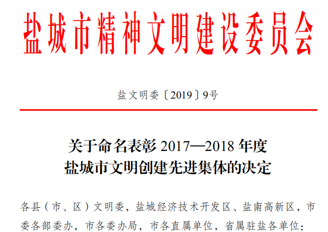 12月7日,淮海農(nóng)場有限公司被省文明委表彰為2016-2018年江蘇省“文明單位”;在事隔省文明委表彰僅11天的12月18日,農(nóng)場公司又獲得了市文明委表彰的2017-2018年鹽城市“文明單位”,這兩塊省市文明單位的榮譽(yù)也是淮海連續(xù)23年不間斷地獲此殊榮。近年來在以習(xí)近平新時代中國特色社會主義思想指導(dǎo)下,全面貫徹黨的十九大精神,大力培植社會主義核心價值觀和軍墾文化建設(shè),積極拓展和深化群眾性精神文明創(chuàng)建活動,為構(gòu)建“實(shí)力、創(chuàng)新、和諧、美麗”新淮海提供精神動力和思想保證。