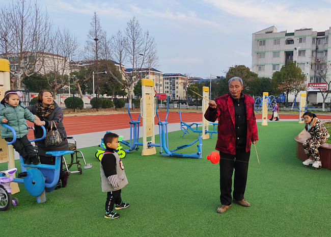 在聊天中我們了解到,現(xiàn)在每天早上6點(diǎn)多鐘,范爹就拖著手推車到廣場上健身,他先是與農(nóng)場太極隊(duì)友們一起打打太極拳、舞舞太極劍后,就甩起半小時(shí)心愛的空竹。然后就與大家一起在門球場上打門球,在切磋技藝中,享受著健身的美好。