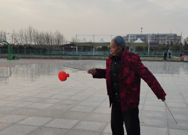 回家后,范振秀每天清晨在廣場上揮舞著空竹操練,“嗡嗡嗡”尖細(xì)的空竹聲響徹廣場的上空,多日來的堅(jiān)持不懈,如今他也能把空竹表演得讓人驚嘆,為此,人們特地還邀請他到太極年會上表演。悅耳的空竹聲,就像是一個健身的號角,這也成為淮海健身運(yùn)動的一景。過往的人們只要聽到時(shí)而尖銳、時(shí)而深沉的空竹聲,就知道又是范爹在廣場上秀技藝了。