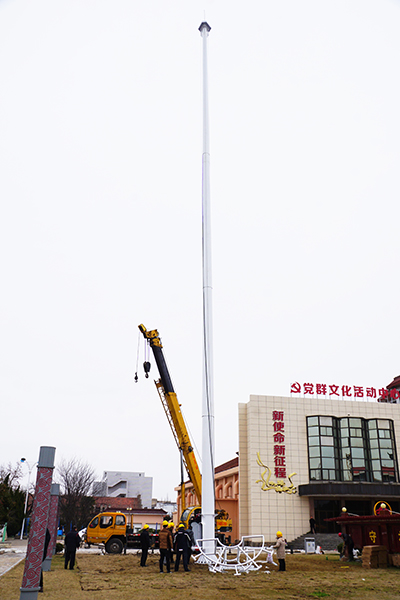 1月10日上午9時(shí)30分,在新洋農(nóng)場黨建文化廣場,塔吊車將一根碩大的高桿燈吊起、嵌入,再由施工人員固定、調(diào)試。下午4時(shí)30分,“安裝、調(diào)直、測試完畢!”隨著工程師大聲宣布,LED高桿燈安裝完畢,隨即,高桿燈調(diào)試成功的喜訊在農(nóng)場干群中迅速傳開,大家為新洋黨委這一亮化民生工程紛紛點(diǎn)贊。