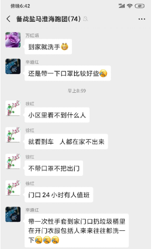 “黃海路3號樓居民管某某是從武漢打工回來的,請你們居委會派人去調查核實。”時間不長,一條“王某某當天也從武漢回來了,你們去證實下,讓我們居民放心。”1月27日下午,在淮海城東微信工作群中,有轄區職工居民向城東居委會主任也是群主的沈曉龍反映看到的狀況和心中的疑惑。