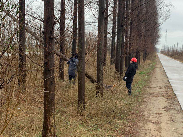 單忠立即組織人員,去巡查線路,在16大隊至29大隊之間10千伏線路上,發現一棵十幾米枯死水杉樹因下雨刮風傾到線路上,造成10千伏三相短路。單忠、吳玉坤、邱金根、唐鑫拿起小手鋸輪流鋸樹,由于樹木粗壯,鋸小又遭受陰雨,用近30分鐘鋸斷,將在其分開線路,確認故障全部排除后,通知值班室恢復供電。單忠說:“我們身上雖濕透,排除故障,保障民生,不影響群眾生活,我們心里還是美滋滋的。”