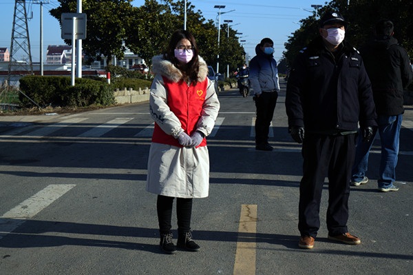 2月18日,在三河農場南大門疫情防控點,一位清秀小姑娘認真查看通行證、過往車輛的身影特別引人注目,紅色的志愿者馬夾,瘦長的身影,認真的模樣成為防控點一道青春靚麗的風景。