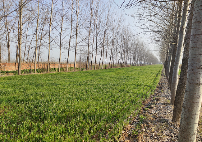 走在江蘇農墾淮海農場廣袤的田野上,我們看到許多鑲嵌在田間林網化的林下,一片片不輸于大田作物的綠色十分惹眼,踏進一條條林地間,一棵棵粗壯的小麥苗連成一片,在狹窄的林地間一路遠去,成就了農場許多林管人員的增收致富夢想———