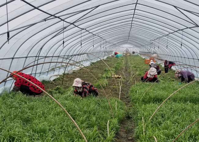 今年春節,為了保證節日市場蔬菜的供應,淮海高效園區想方設法動員廣大職工群眾戴著防護用品走出家門,自年初四就復工開始進入大棚割運韭菜、青菜、大蒜等供應周邊市場,維護市場供給,并在疫情防范高峰期,還組織精包裝的菜品送至機關社區大院,方便職工居民選購……