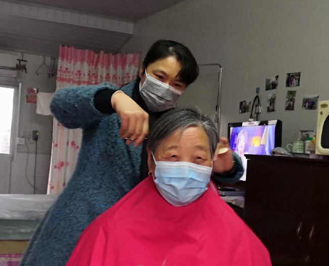 因街道上理發店全部關閉,許多春節期間想理發的老人甚感不便。淮海城西居委會志愿者沈月萍看到這種情況后,利用自己10多年以來幫自家父母理發的便利條件,無償幫助前后幢10多名老年人義務理發,精湛的理發技藝,贏得了城西居民們的普遍贊譽!