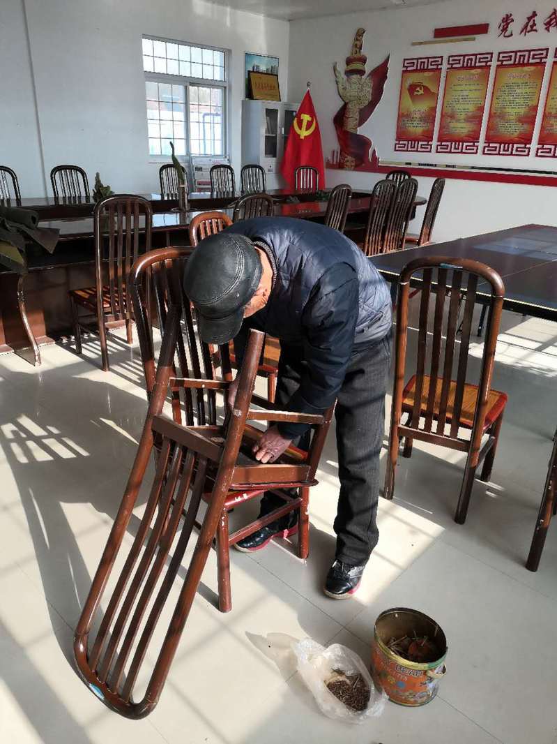 城西居委會會議室的桌椅板凳年久了,開幾次會議就要損壞幾張,退休后聘任居委會委員的朱富錢每次看到有椅子損壞就自備材料將其修復。