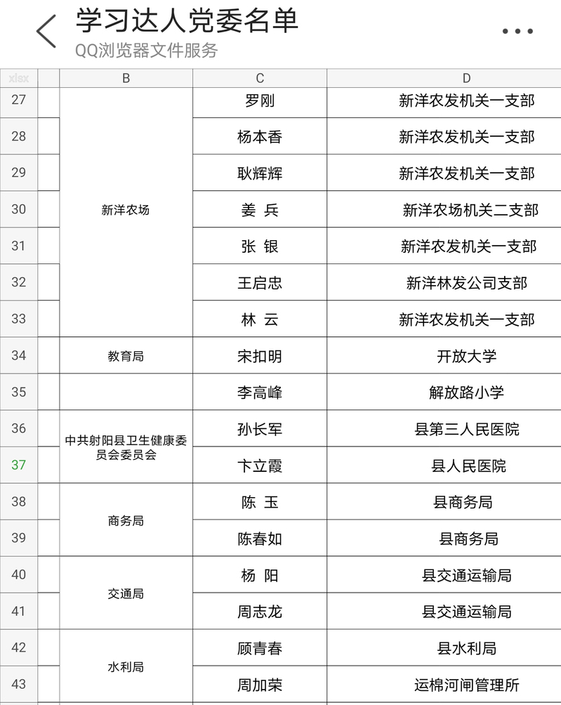 4月中旬,射陽縣發出通知,計劃表彰第一批縣級“學習強國”學習達人,要求是全國排名前50萬的學員。新洋立即發出通知,要求各支部進行摸排上報。最終,由射陽縣發出通告,全縣全國排名前50萬的學員共有51名,新洋占了7席,成為報送人數最多的一家單位,而報送的7人中有5人來自同一個支部。