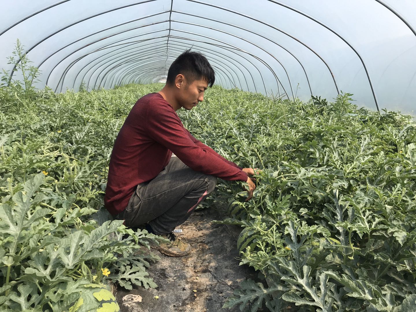 大棚西瓜的主人蔣雙飛是一個80后的年輕人,這已經(jīng)是他種植大棚西瓜的第六年。在這六年里他從一個“小白”成長為“種植能手”花費了不少心血。